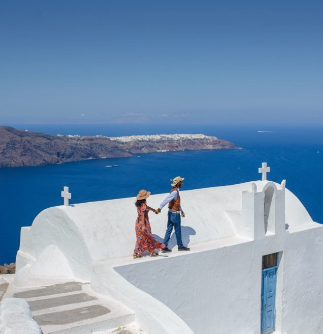 Leaving Emporio you will have some free time to relax and enjoy a lazy break at the most famous black sandy beach of the island at Perivolos, where you can swim or even have lunch, tasting the local flavors. Later, the group will drive around the castle of Akrotiri and will have a short photo stop to enjoy the view of the castle the amazing caldera from the south part of the island. Afterward you will visit the village of Pyrgos which is built on the top of a hill, you will walk to the top where the Venetian castle overlooks the caldera and get a panoramic view of the island. After the walk to the castle, you will relax in an old canava and taste local wines. Subsequently, the group will make a short stop in Firostefani, where you can take breathtaking photos of the famous Blue Dome and the Rock of Skaros, where the capital of the island used to be during the Venetian period.